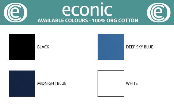 Minimum order of 200 pieces per style per colour. Available in 100% organic cotton or 50/50 rPET/organic cotton jersey. For custom custom colours the minimum order is 500 pieces.